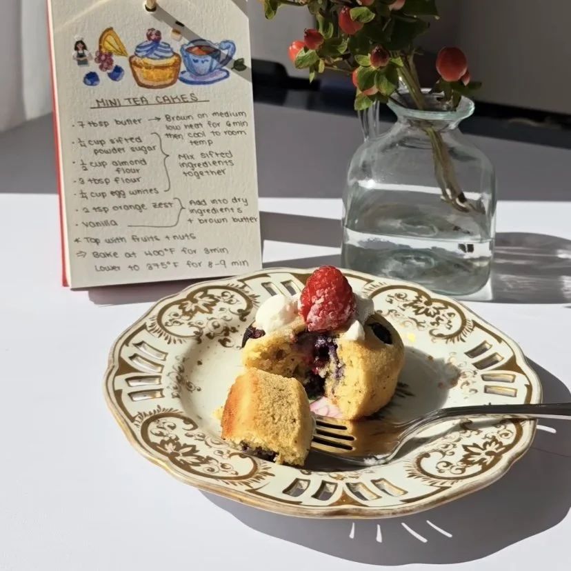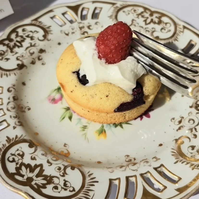 Warm up that oven, creatives! If you’re in need of a treat for a tea party or picnic spread, try our delightful Berry Tea Cakes. Topped with cream and raspberry, these are sure to be a hit!