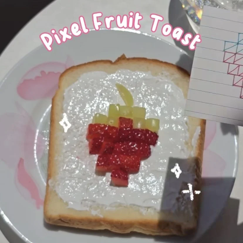 Get that toaster fired up! Today, we have a lovely, easy, and adorable Pixel Fruit Toast on the menu. This is a fun way to present fruit and cream at a picnic or party—or for kids who might be picky eaters! Sharpen up your knife and let’s get to work.